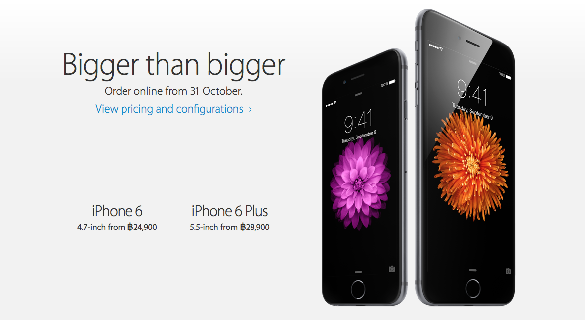 ราคา iPhone 6 และ iPhone 6 Plus ในไทย เครื่องเปล่า จาก Apple Store